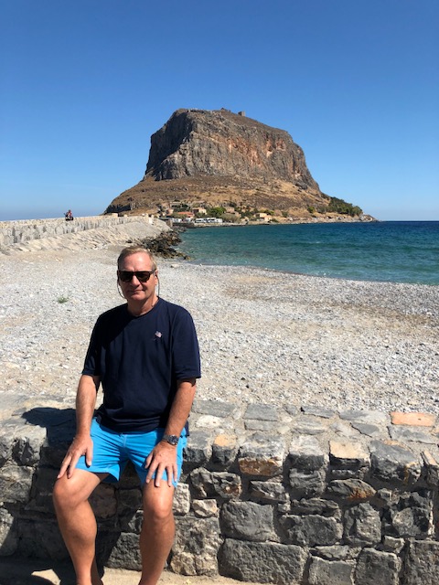 Anyway, today we shall be exploring a most unusual venue called Monemvasia, Greece. Mo-Mo, as I dubbed the place, is located on a small island off the eastern coast of the Peloponnese and is linked to the mainland by a short causeway. We arrived in port early in the morning, dropped anchor in the bay, and spent the entire day exploring and swimming. (The water was delightful)