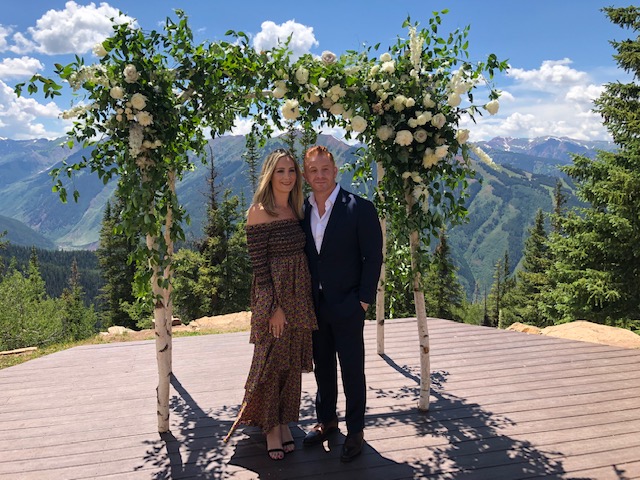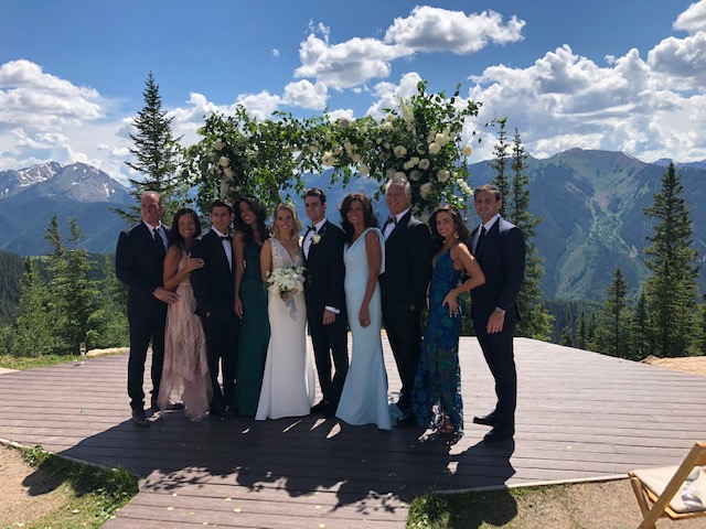 The lovesick couple got married on the very top of Aspen Mountain, which is about 14,000 feet ABOVE sea level.  (They should call it “see level,” because you can see forever from the top!)  The wedding party took a 20-minute gondola ride up to the top, witnessed a lovely ceremony, drank too much champagne, and then headed downhill to a spectacular reception at the Little Nell Resort Hotel.  (I have attached some photos taken at the top of the mountain.)