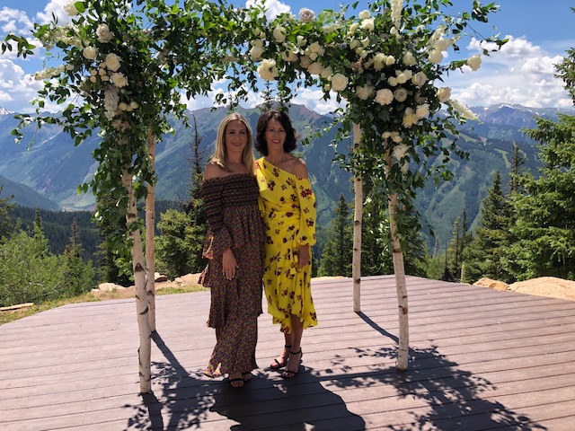 The lovesick couple got married on the very top of Aspen Mountain, which is about 14,000 feet ABOVE sea level.  (They should call it “see level,” because you can see forever from the top!)  The wedding party took a 20-minute gondola ride up to the top, witnessed a lovely ceremony, drank too much champagne, and then headed downhill to a spectacular reception at the Little Nell Resort Hotel.  (I have attached some photos taken at the top of the mountain.)