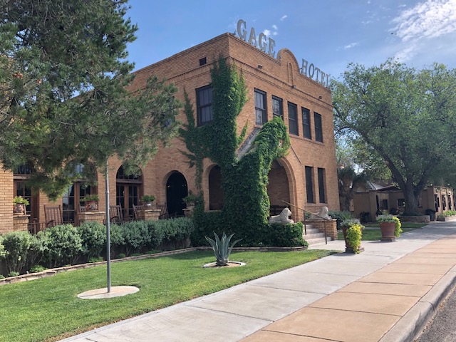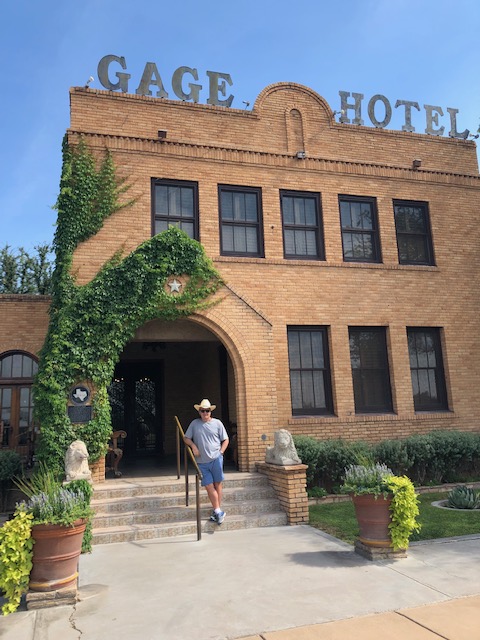 After we sobered up (and had a good night’s sleep) we turned south and drove on a VERY deserted road to the quaint western town of Marathon. (The name doesn’t quite fit, since nobody runs down there. Too hot.) After lunch we toured the famous Gage Hotel, the gem of Brewster County. (Brewster is the largest county in Texas, which is still the largest state. If you don’t count ice and snow.)