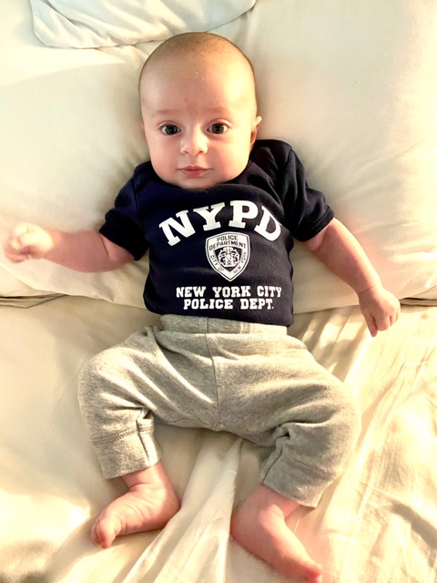 BUT…  most importantly, I’ve been enjoying the newest addition to our ever-growing family…  my adorable new grandson, Mr. Leo Oliver Barlin!  (Photos attached)  I’m supposed to travel up to New York City in late fall to receive my gold medal (for CAPONE ISLAND) and I’ve hired Leo to serve as my bodyguard.  His mom agreed to send the little tike for police training, so since he graduated at the top of his class, I have attached a photo of him in full riot gear.