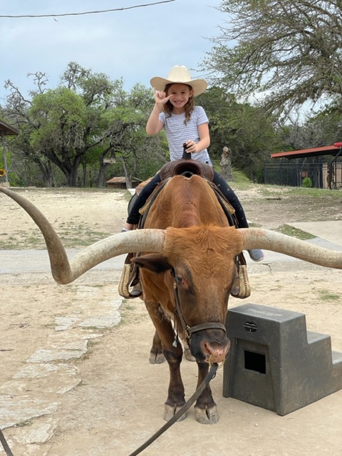 We just returned from our annual pilgrimage to the Mayan Dude Ranch in Bandera, Texas. (I knew I’d work in some Indians somehow!) Bandera, as you might know, is the self-proclaimed “Cowboy Capital of Texas.” This year we took BOTH of our granddaughters, Galloping Goldie and Fearless Fiona, and they were mighty cute cowgirls. They love to ride horses, and this part of the Hill Country is especially beautiful during the spring wildflower bloom.